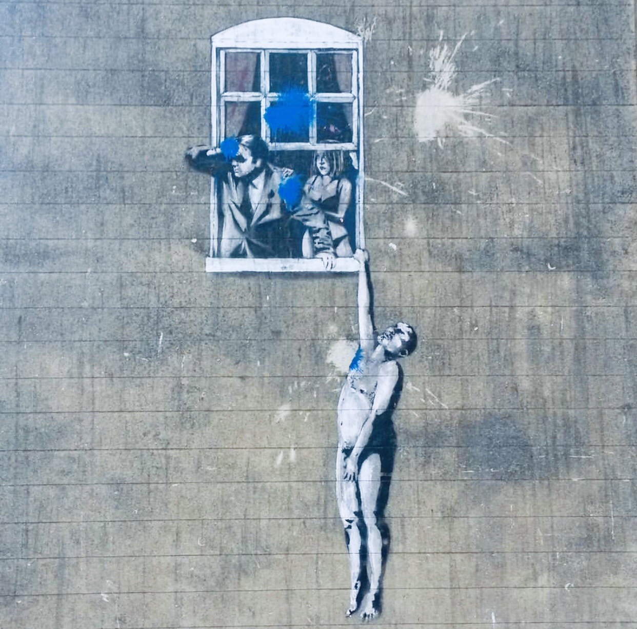 Il tour dei murales comincia con un’opera nei pressi del ponte di Park Street, Banksy, nel luogo dove prima si trovava una clinica di medicina sessuale ha deciso di proporre una scena con “lui, lei e l’altro”, dove il “terzo” è appeso all’angolo della finestra per nascondersi.