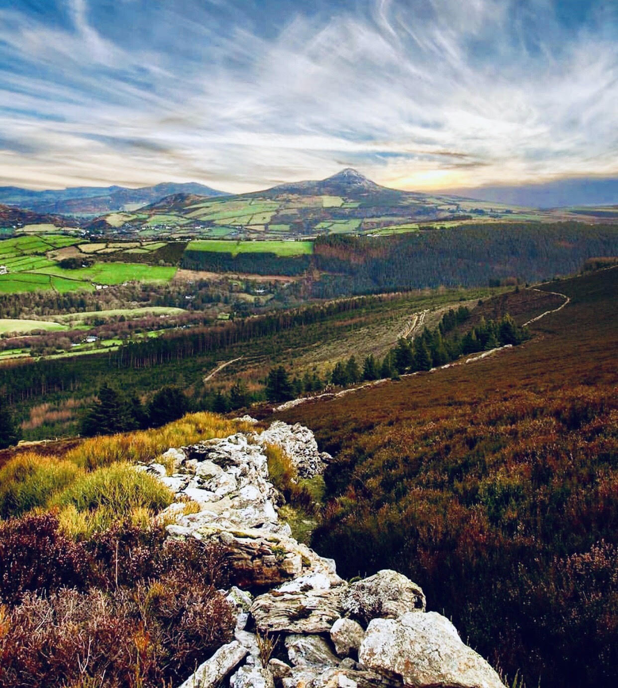 La cima più alta delle montagne di Wicklow è Lughnaquilla, che si affaccia sulla panoramica Glenmalure Valley, antica roccaforte irlandese.