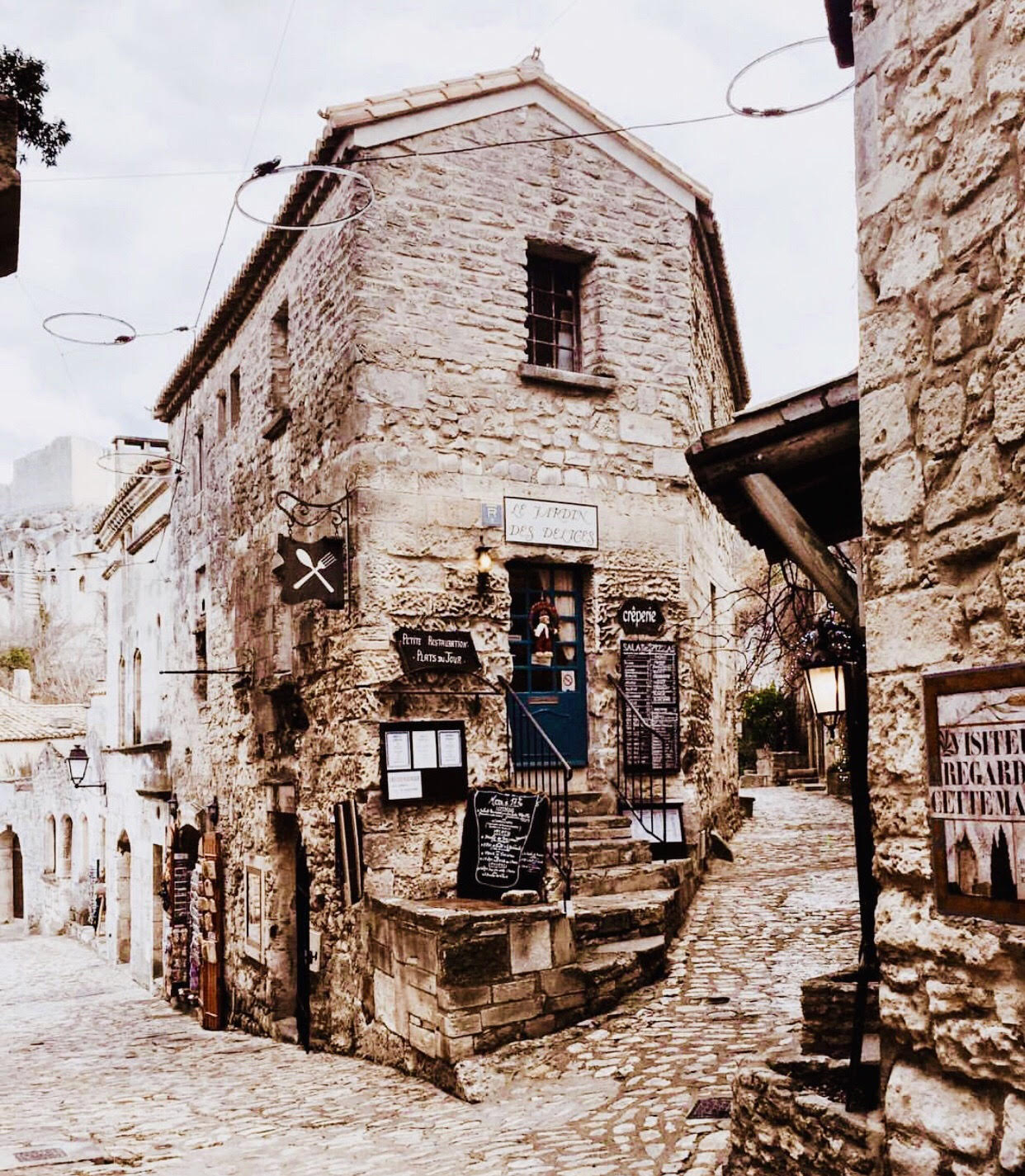 Il villaggio di Les Baux de Provence si colloca su uno sperone roccioso, fiancheggiato da due strapiombi è caratterizzato da un antico Castello Fortezza in rovina e alcune case disabitate.
