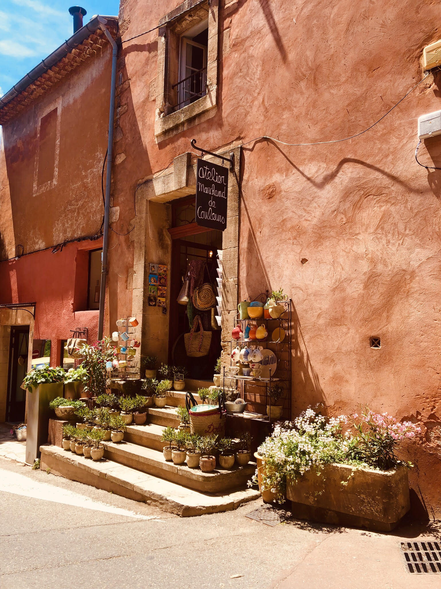 Roussillon è un villaggio famoso perché sorge su un giacimento d’ocra. Tant’è che la zona è conosciuta anche come “le terre d’ocra” ed ha i colori del deserto. Roussillon prende il nome dal rosso delle sue terre che in realtà sono anche giallo e arancione e qui, infatti, non solo la terra ma anche i palazzi sono o arancio o rosso o giallo.