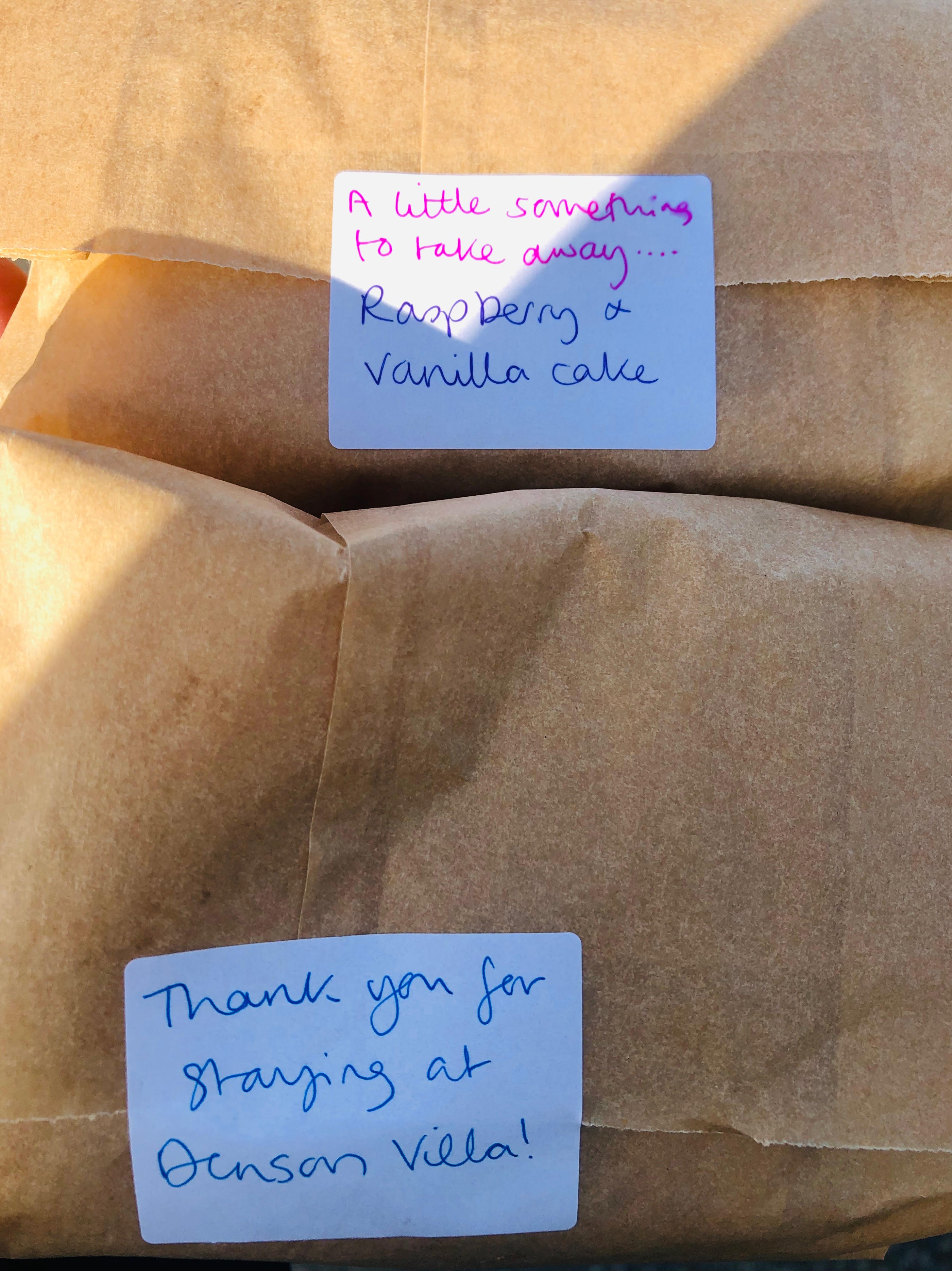 Al check out Alex ci ha congedato con due fette di torta home made, da consumare durante il viaggio.
