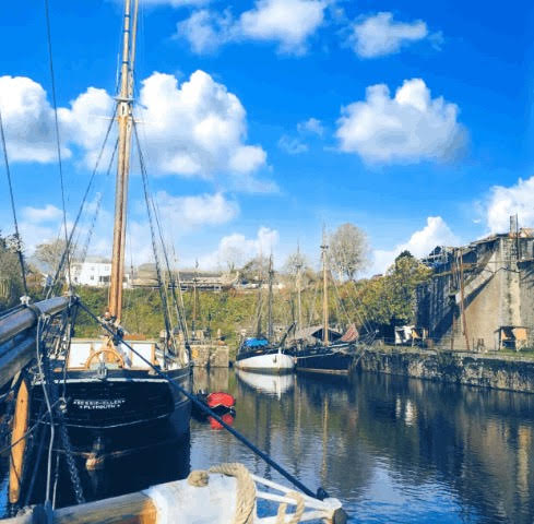 Anche qui al calare della marea le barche sul porto restano appoggiate alla sabbia in attesa che risalga la marea per tornare a galleggiare. Fenomeni comuni in tutta la Cornovaglia ma anche in Bretagna e Normandia è abbastanza comune tutto questo.