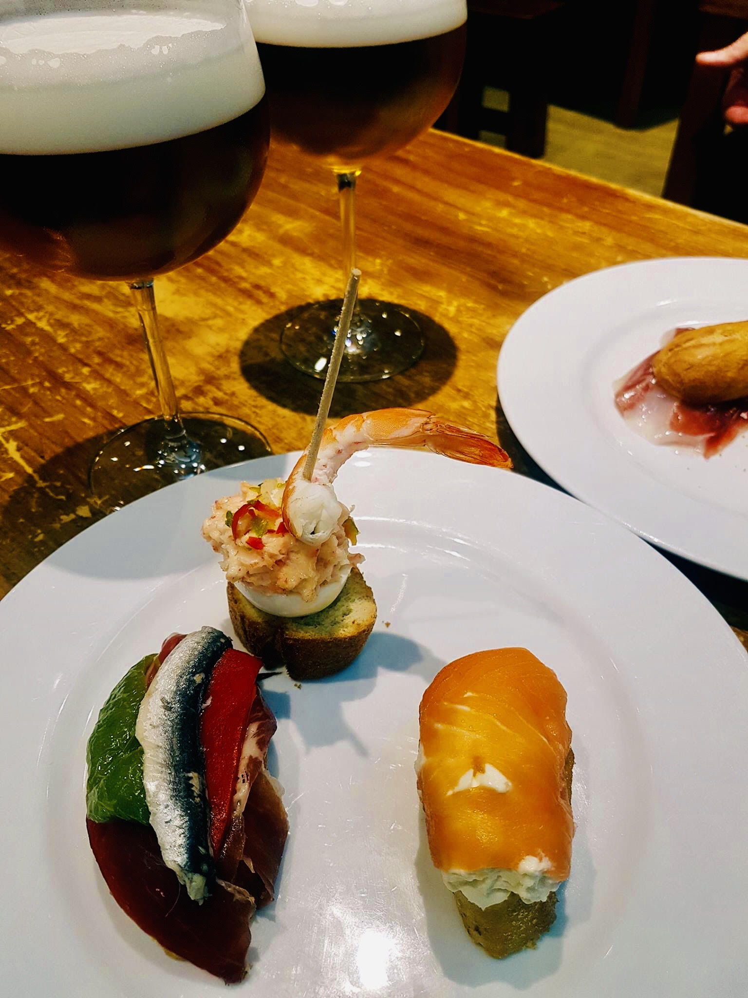 Inutile dire che a San Sabastián, dato il breve spuntino del pranzo, alla vista dei tanti locali fornitissimi di tapas ben in vista si è scatenata una fame golosa. Entriamo in qualcuno di questi locali mentre facciamo conoscenza delle vie centrali della città, ci perdiamo nel labirinto delle stradine del centro storico. Dove torneremo sul tardi anche anche per cena, siamo in Spagna e si può magiare fino a tardi! E per noi abituati al Regno Unito è un evento…
