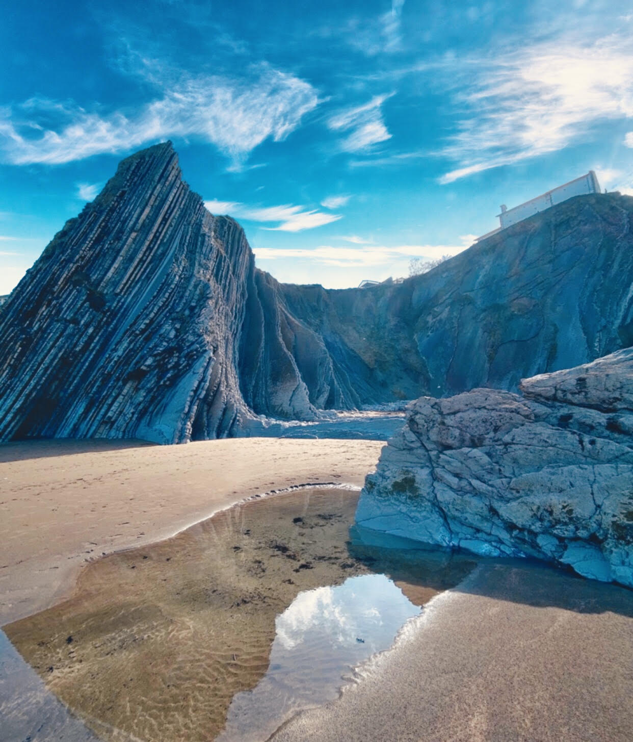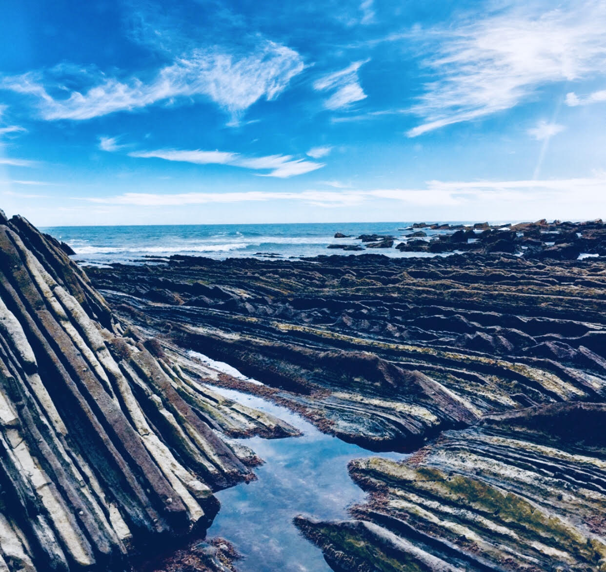 Ci dirigiamo a Zumaia con l’idea di dare uno sguardo alla splendida Playa de Itzurun dove sono state girate alcune scene del Trono di Spade. Zumaia si colloca in una posizione privilegiata, sulla baia di Guipúzcoa circondata dalle ripidissime originali scogliere che circondano le sue due bellissime spiagge. Anche il pittoresco centro storico con viuzze acciottolate e molti edifici medievali è molto interessante. Nella spiaggia troviamo il Flysch, uno dei tesori della costa basca, per la sua particolare caratteristica. Il flysch si trova sia nelle pareti verticali della scogliera sia sul terreno e sono degli strati di roccia consecutivi creati dalla continua azione del mare. Danno l’idea essere di fogli di pietra che formando un libro aperto.