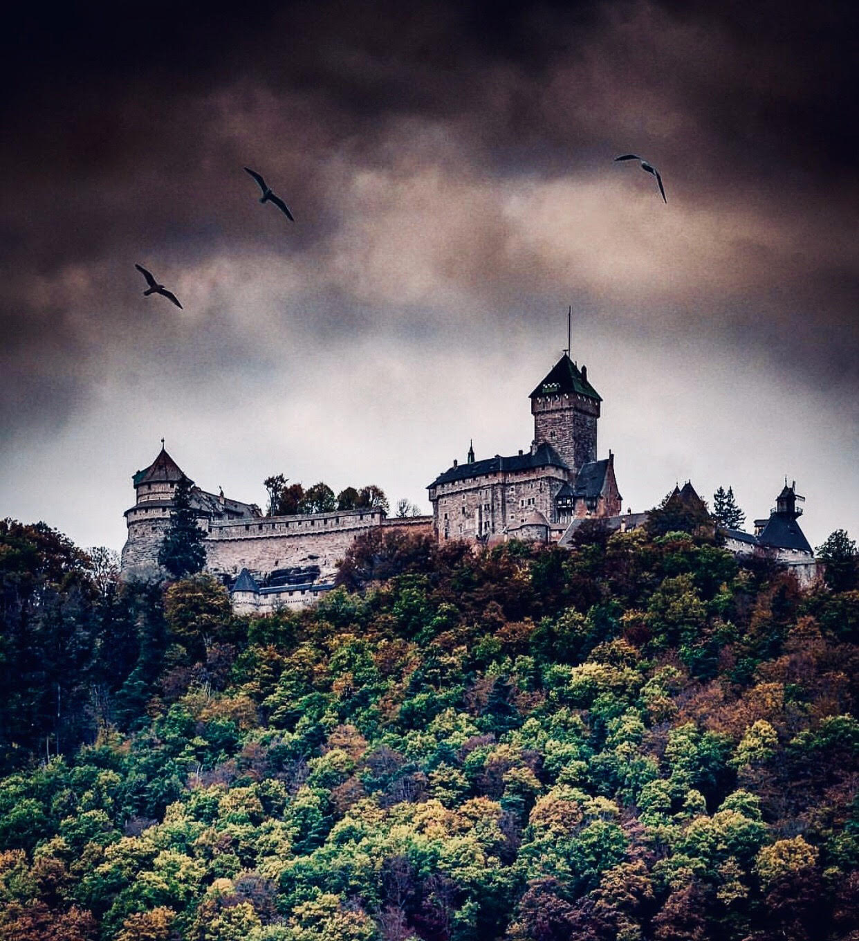 Continuando a salire la strada, in cima alla collina, trovate lo Château du Haut-Kœnigsbourg, ricostruito nel XX secolo è visibile sin da lontano grazie ai suoi possenti bastioni rossastri che dominano l’intera vallata. La visita al castello regala una straordinaria e privilegiata vista che si estende dalla Foresta Nera sino ai Vosgi, per arrivare, con il cielo limpido e sereno, fino alle Alpi.