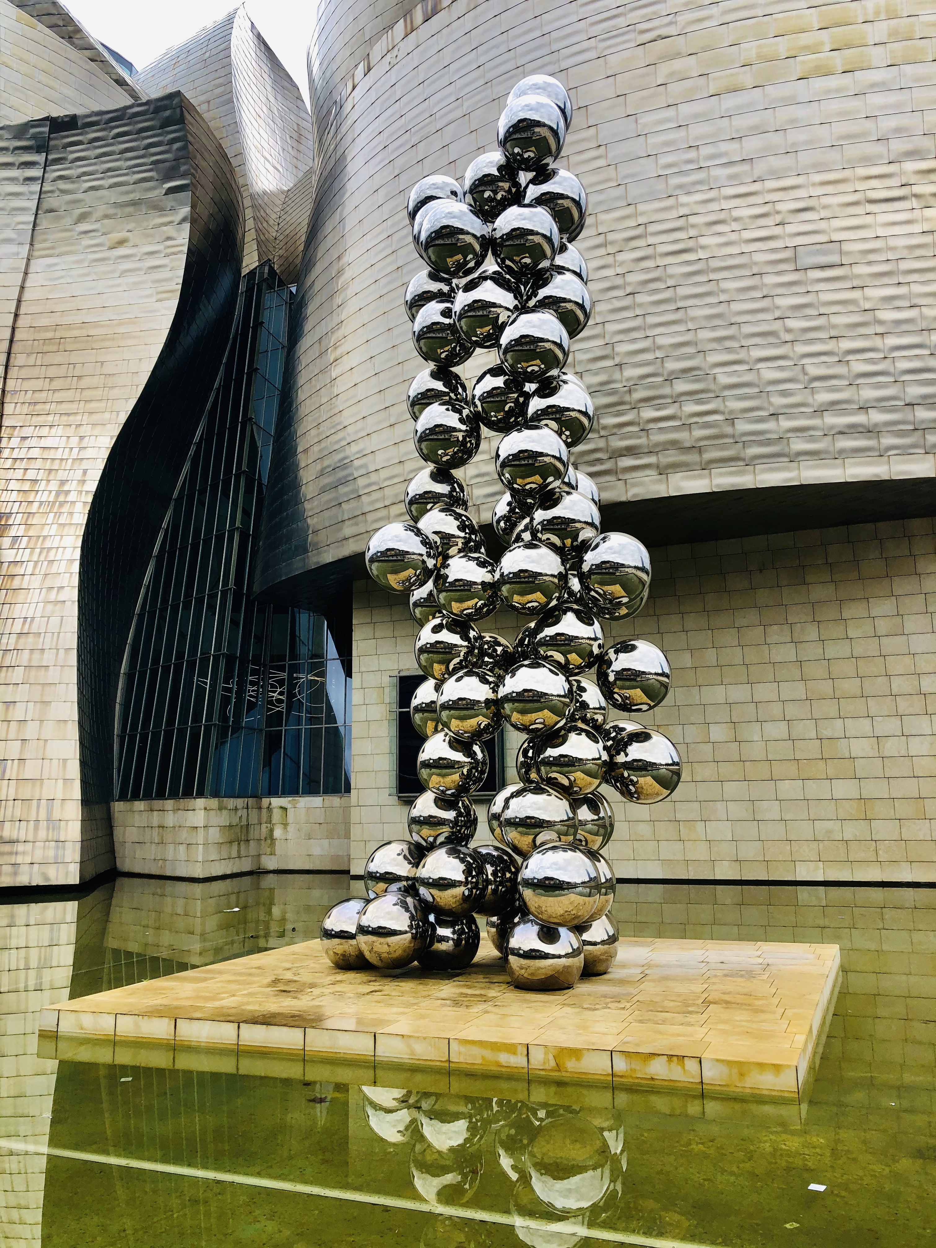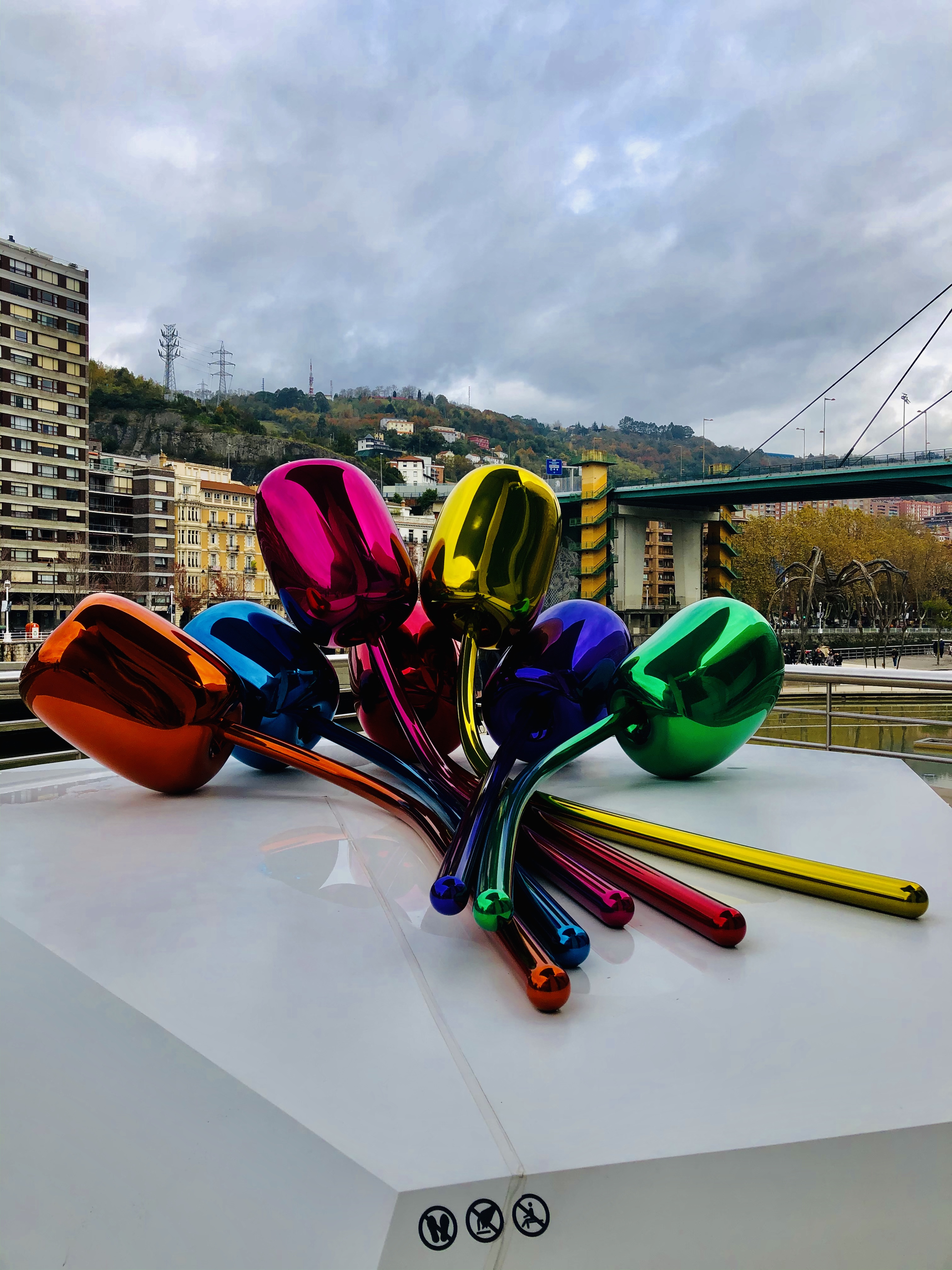 Già all’esterno del Guggenheim si trovano delle sculture giganti (il Ragno di Louise Bourgeois e i Tulips di Jeff Koons) diventate parte integrante per del museo. Solitamente c’è anche il Puppy, nei giorni in cui ci siamo stati noi non c’era per manutenzione e cambio dei fiori.