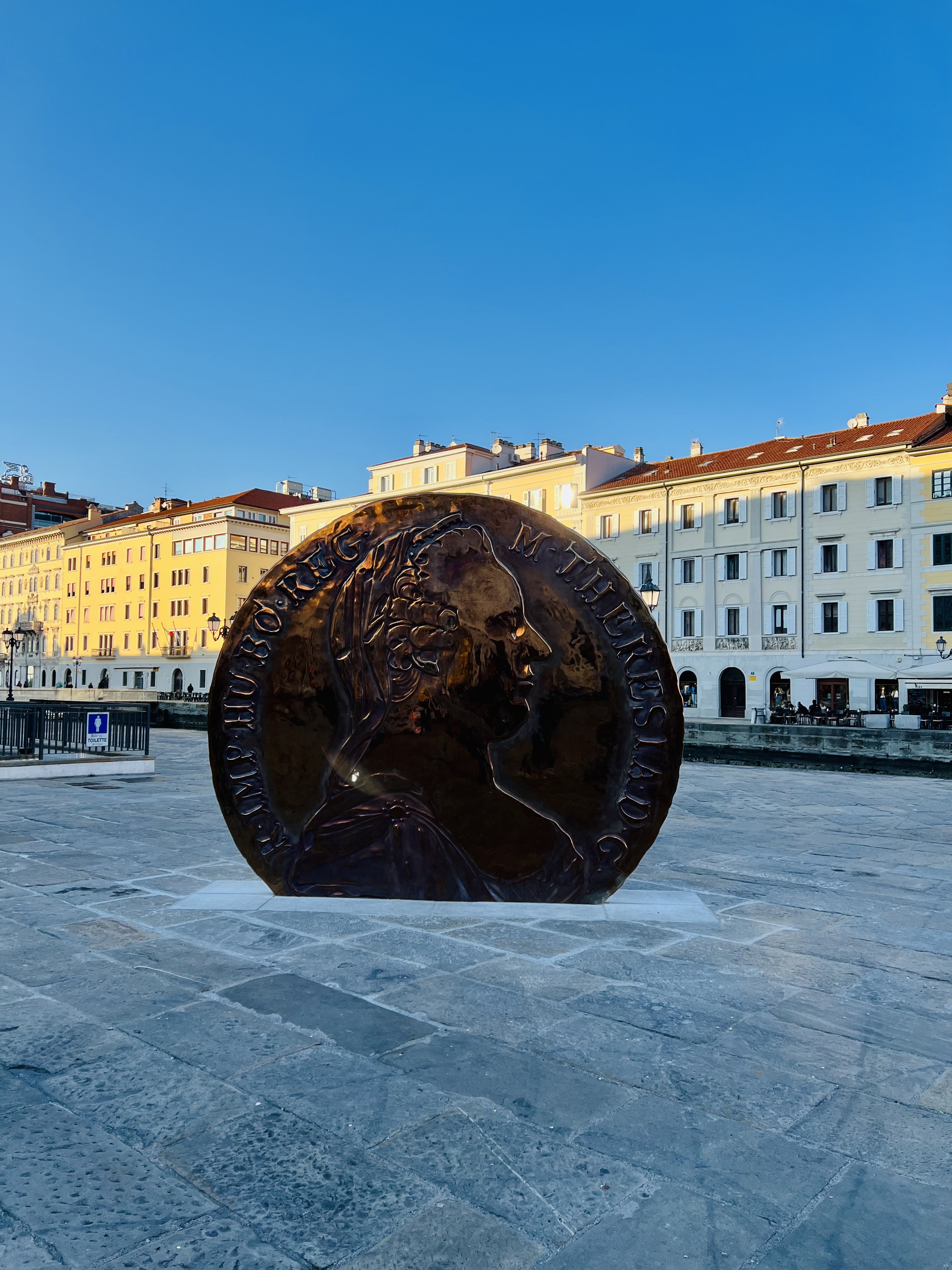 In piazza del Ponterosso una recentissima installazione dedicata all’imperatrice Maria Teresa, da cui il borgo prende il nome, il “Maria Theresia Taler”. Il tallero di Maria Teresa è la moneta che iniziò a circolare nel 1780 e venne utilizzata nei commerci internazionali per più di cento anni, conosciuta ben oltre i confini asburgici. Il tallero di Maria Teresa ritrae il busto dell’imperatrice di profilo, in versione matura, raffigurando l’immagine che la popolazione del posto aveva dell’imperatrice.