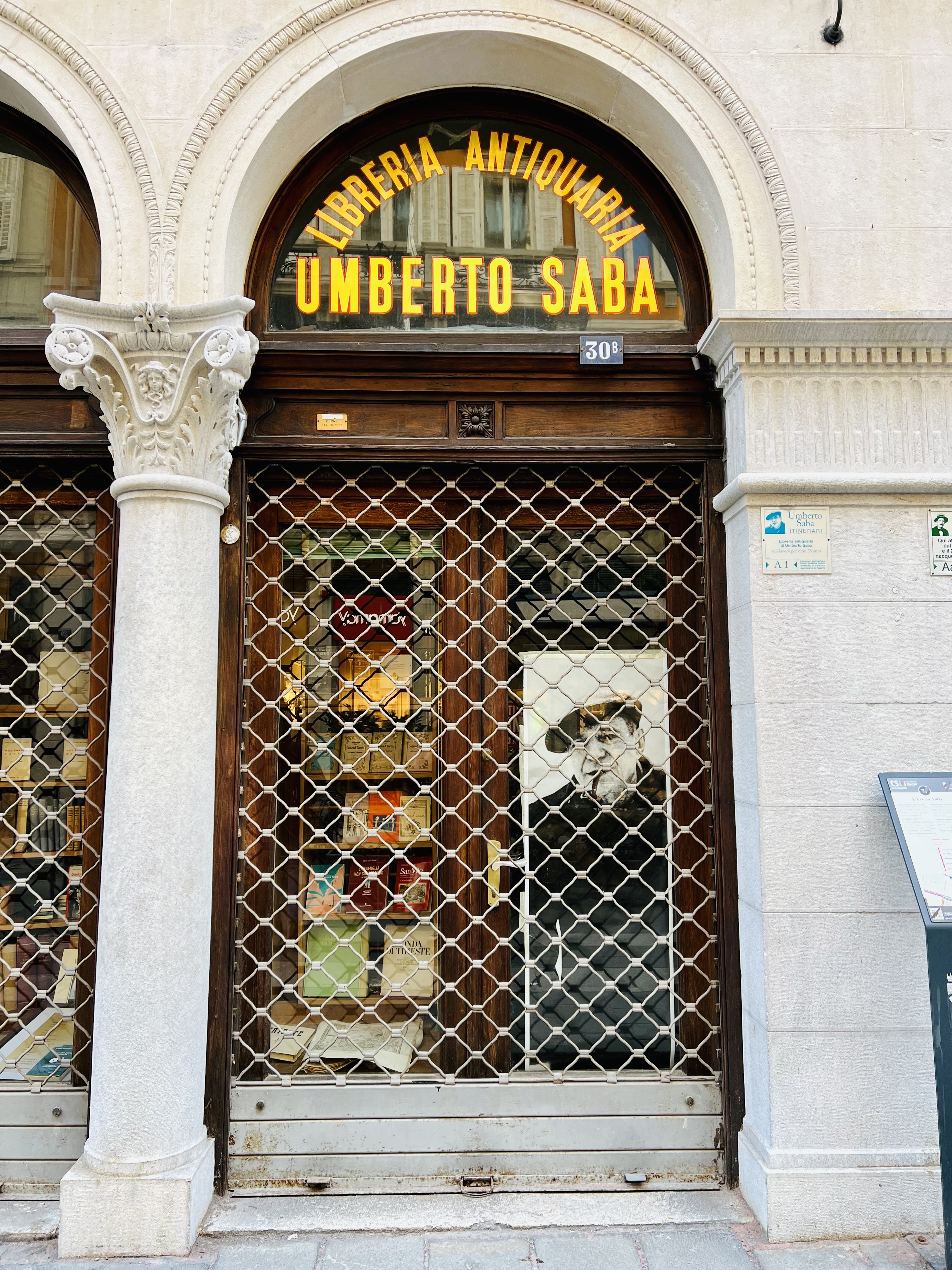 La libreria del celebre poeta si trova in via San Nicolò n. 30, nel cuore della Trieste storica. Nell’“antro oscuro”, come lo definì Saba, sono passati grandi intellettuali del passato e del presente, tra gli habitué Joyce, Svevo, Stuparich, Scipio Slataper e Virgilio Giotti e Claudio Magris.