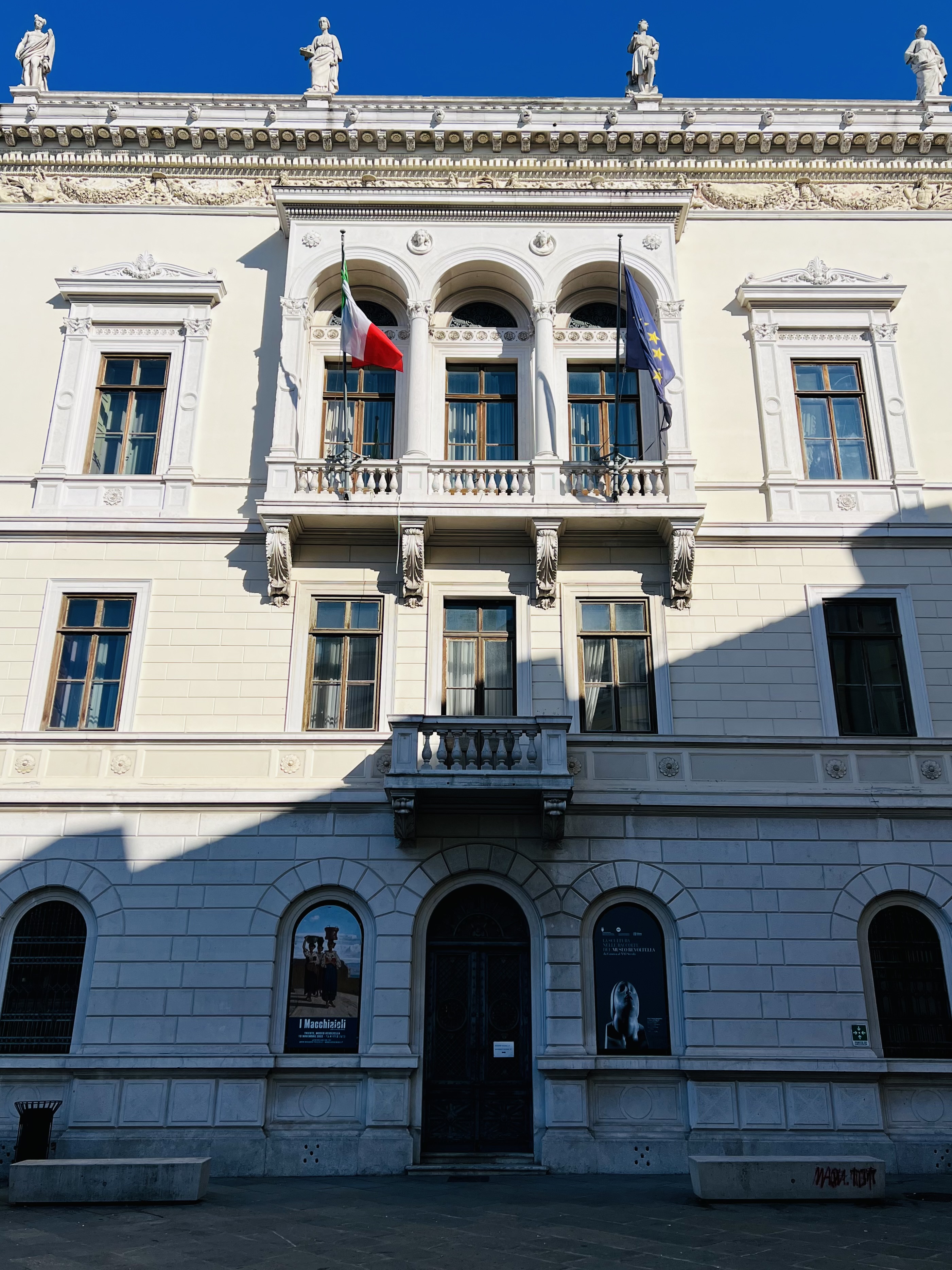 Il palazzo, già carcere in epoca asburgica e poi caserma, ospita oggi anche la sede temporanea della Biblioteca Civica Hortis con l’Archivio Diplomatico che conserva i documenti più antichi della città, la documentazione del processo per l’omicidio di Winckelmann.