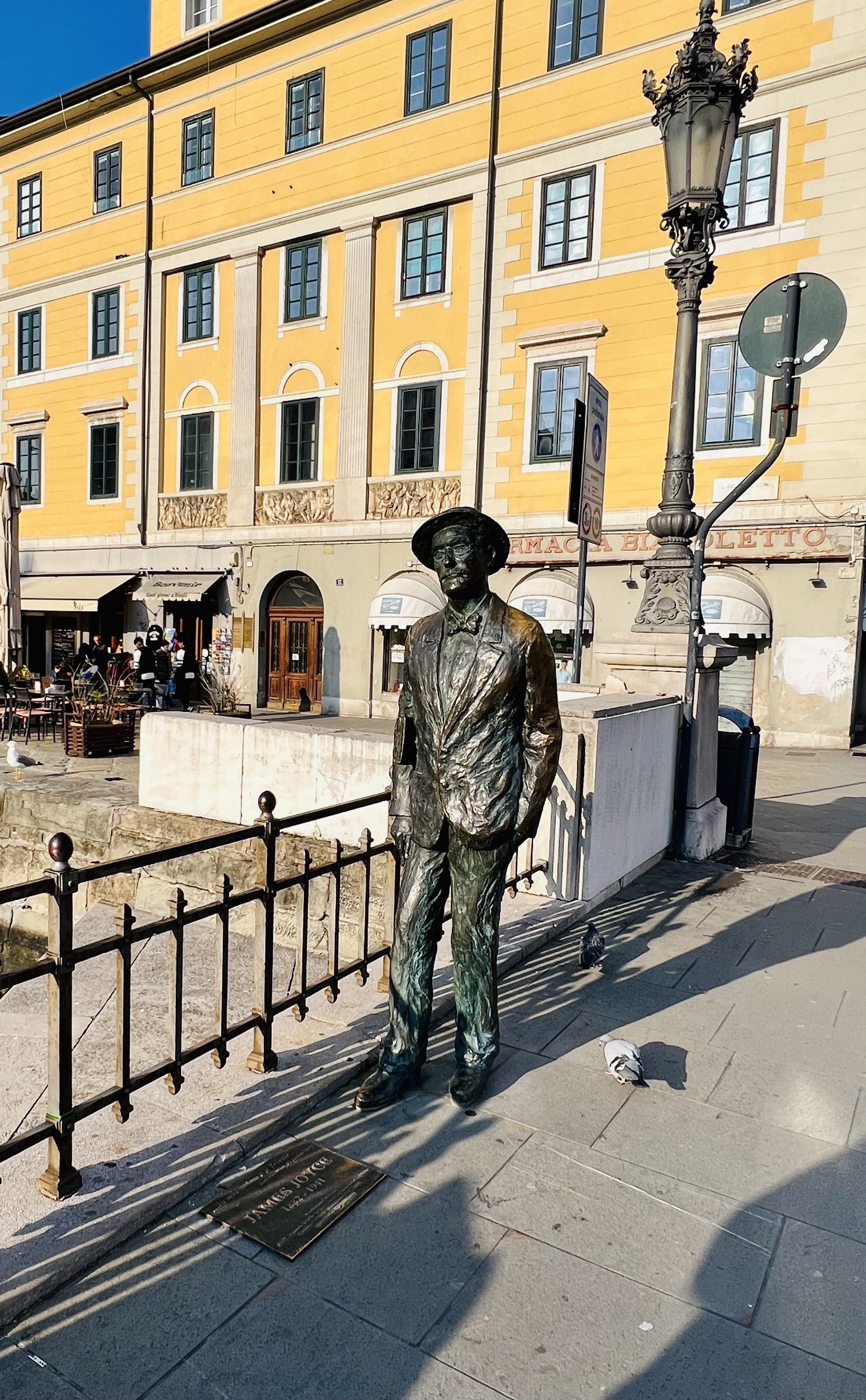 Collocata sul ponte di Via Roma, troviamo infatti la statua dello scrittore irlandese arrivato a Trieste nel 1904 con la sua compagna Nora. La coppia che cambiava spesso dimora – pare non pagasse l’affitto – per un breve periodo ha vissuto anche in Piazza Ponterosso al terzo piano del palazzo che ora ospita l’omonimo caffè. La statua di Nino Spagnoli è stata collocata qui nel 2004.