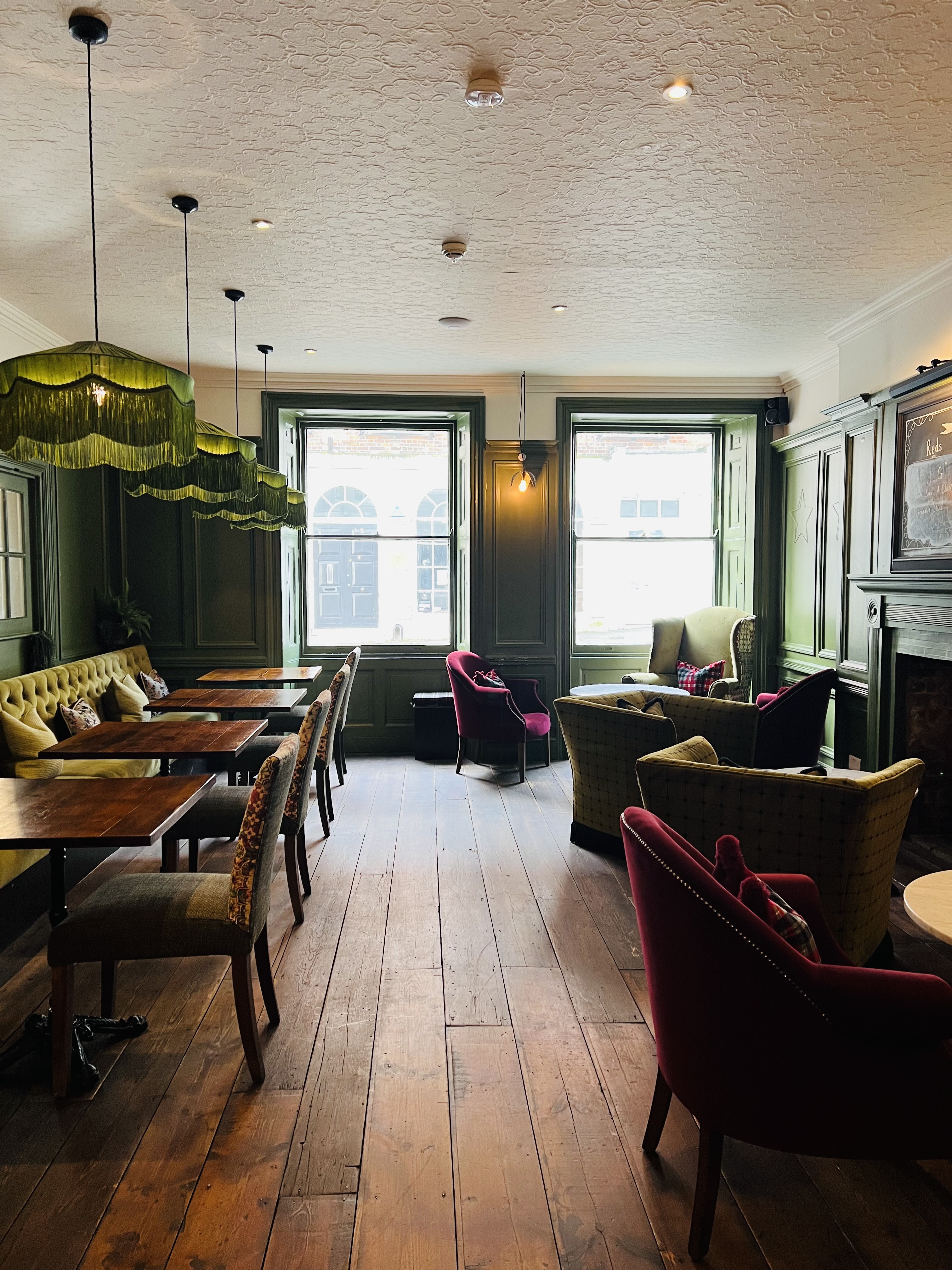 Un hotel The King’s Arms di Dorchester. Qui mi sono innamorata delle aree comuni: bar, ristorante, reception e aree accoglienza varie. Un hotel storico tenuto con estrema cura, splenditi antichi pavimenti, boiserie dai colori vivaci, legno, marmo, ghisa e tocchi di colore nelle tappezzerie, nei muri, nella boiserie e nell’arredamento, davvero di gran gusto.