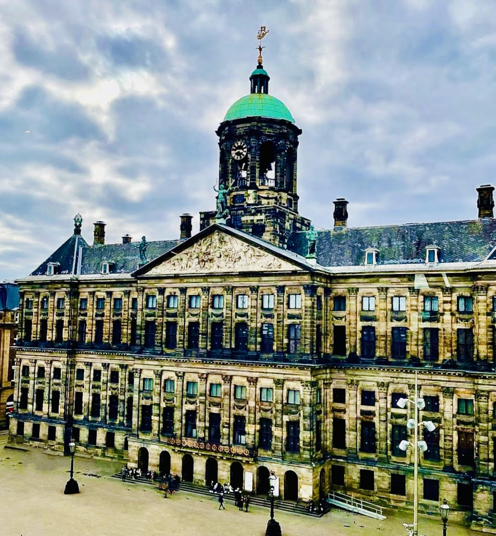 Nella piazza troviamo l’imponente Palazzo Reale, costruito nel 1665 durante il Secolo d’Oro, come Municipio. Il Palazzo Reale, Koninklijk Paleis in olandese, è un maestoso edificio in stile neoclassico realizzato in arenaria grigia, per testimoniare la potenza commerciale di Amsterdam e della Repubblica Olandese. Anche internamente decorazioni raffinate e di pregio. Fu trasformato in Palazzo Reale da Luigi Bonaparte, nel 1808.