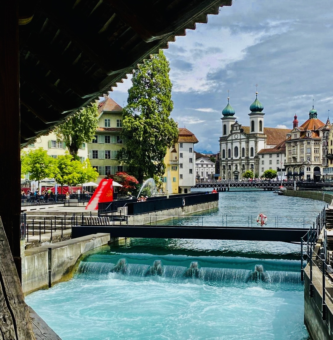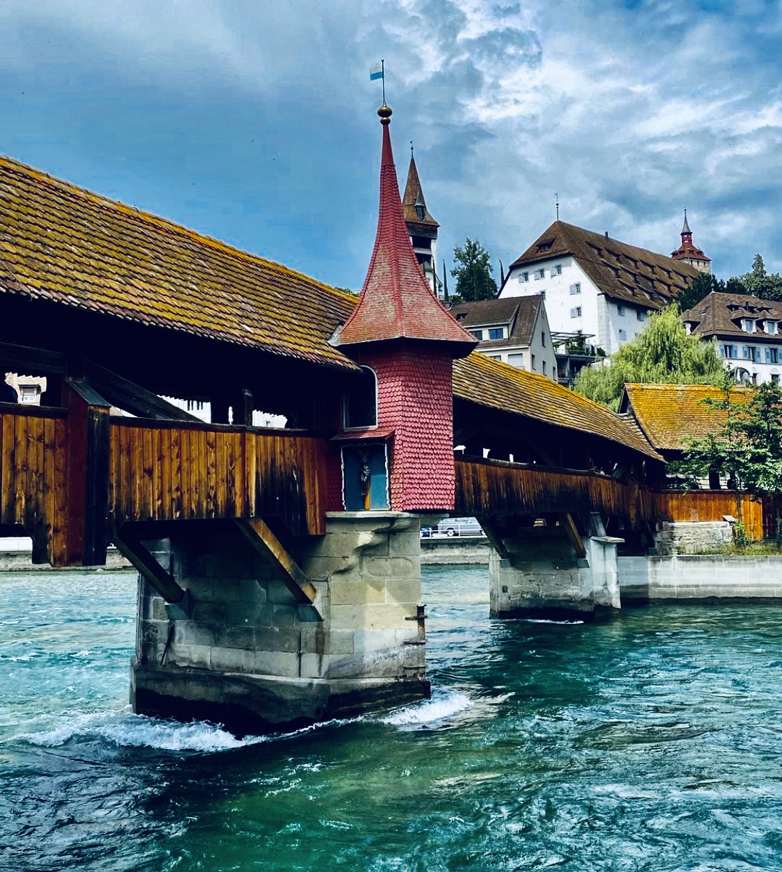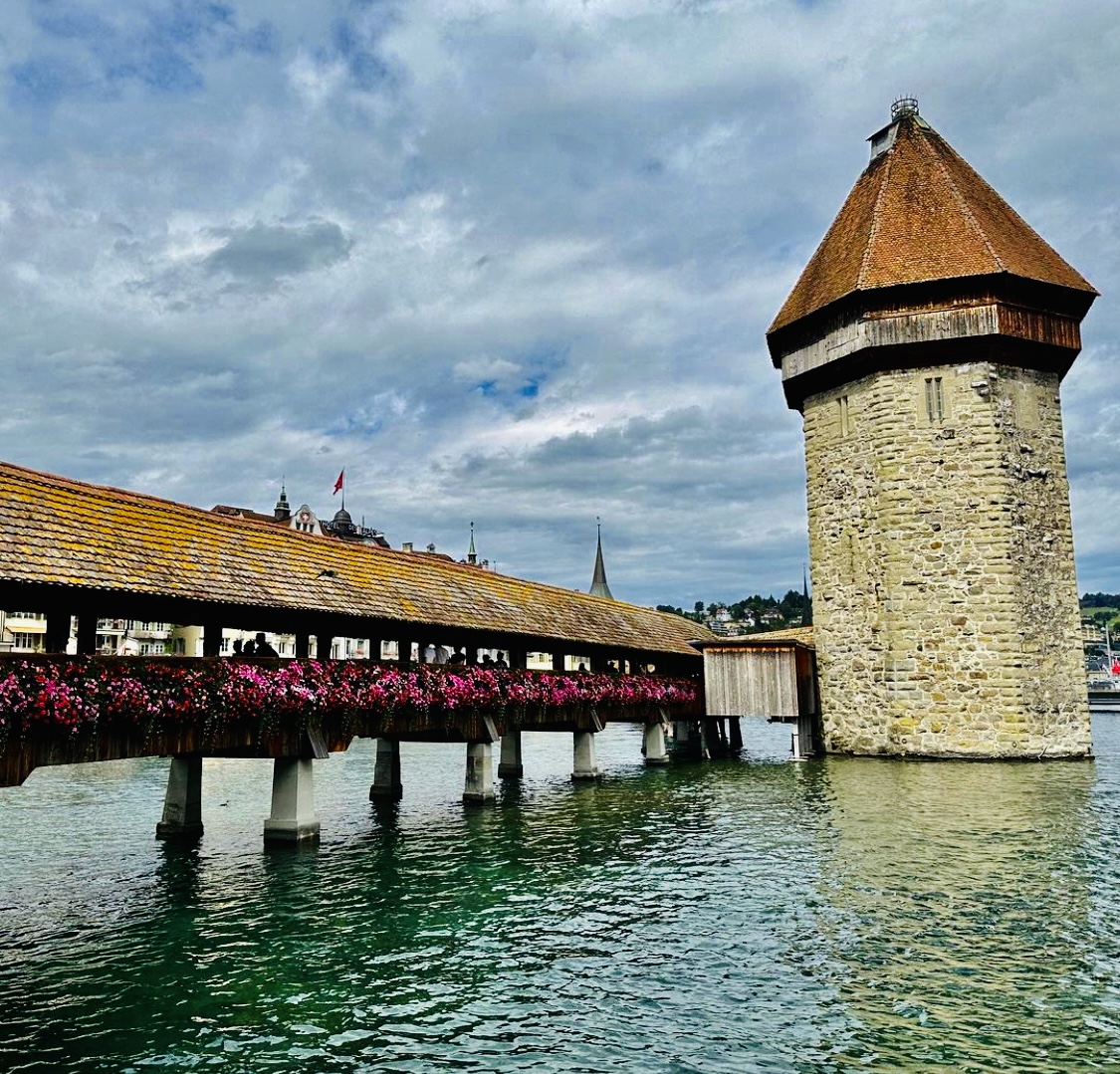 Più o meno a metà del ponte sorge una torre a forma ottagonale la Wasserturm, Torre dell’acqua, uno dei simboli di Lucerna La torre aveva una funzioni difensive.