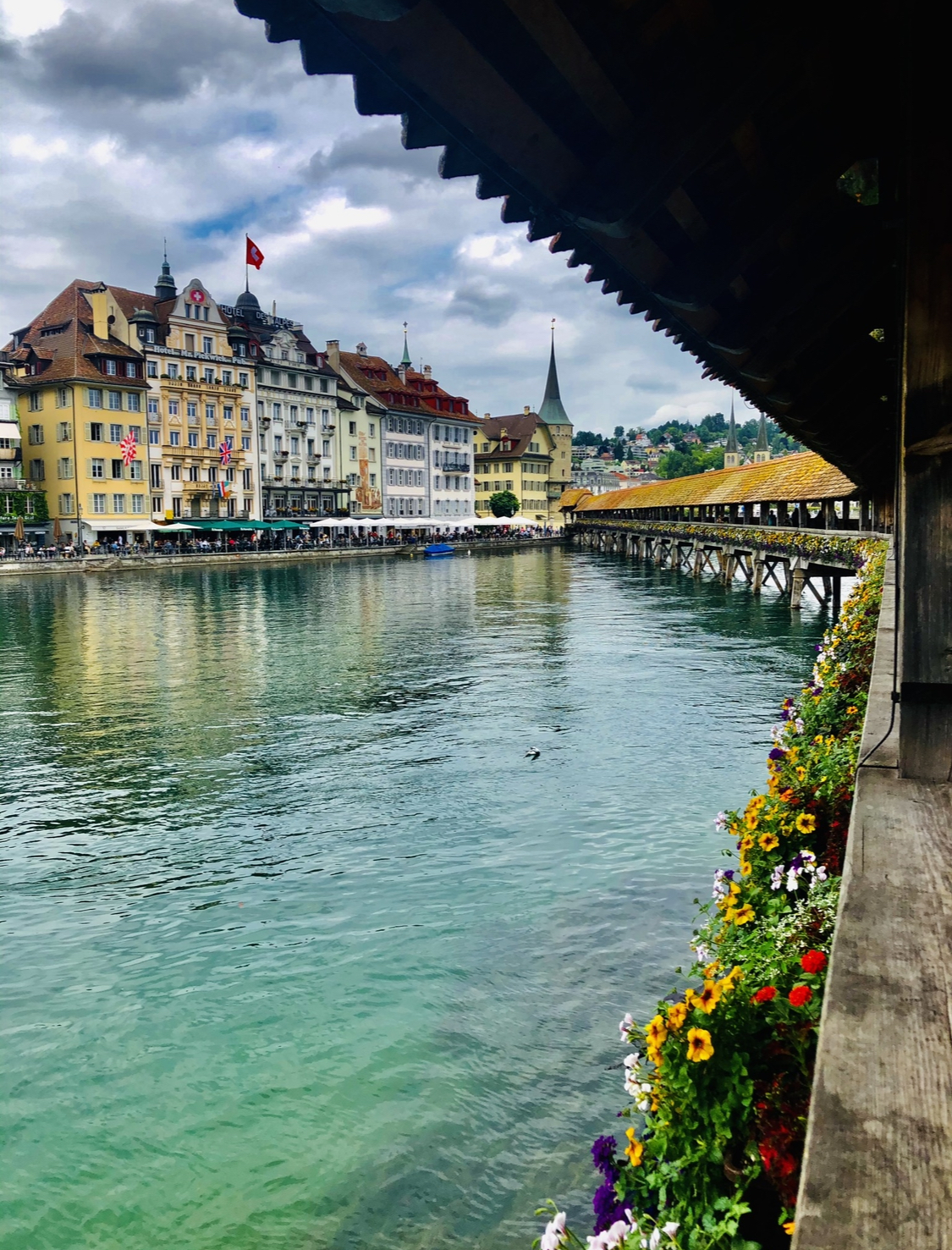 L’immagine più ritratta di Lucerna è sicuramente Kapellbrücke, un ponte pedonale coperto in legno, che attraversa il fiume Reuss, un affluente del lago dei Quattro Cantoni. Inizialmente costruito per collegare le due parti della città: la Città Vecchia, a nord, con la parte nuova lungo la riva meridionale.
