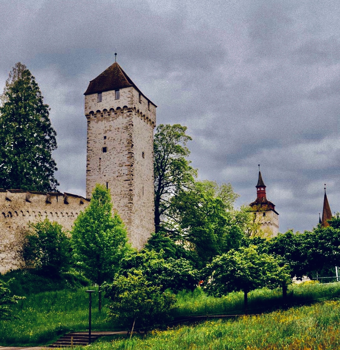 È possibile salire sulle quattro delle torri: Schirmerturm, Zytturm, Wachtturm e Männliturm, per ammirare dall’alto la città, il lago e tutto il paesaggio che circonda Lucerna. Sulla Zytturm si trova il più antico degli orologi di Lucerna, costruito nel 1535, suona ogni ora e ha il privilegio di battere un minuto prima di tutti gli altri orologi della città.